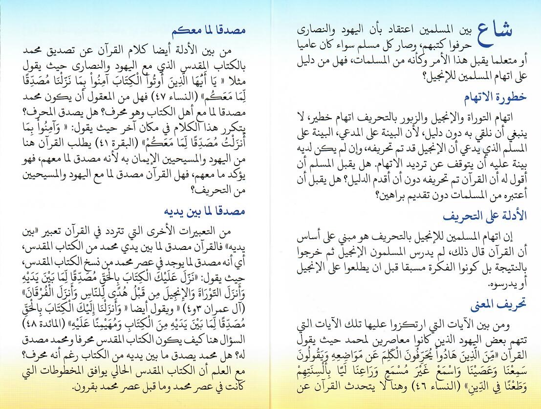 Traktat Arabisch, Wo sagt der Koran, dass das Evangelium verfälscht ist?