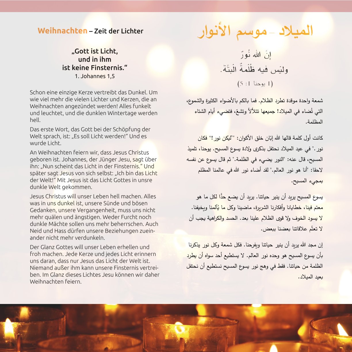 Evangelistische Faltkarten: Weihnachten - Zeit der Lichter, Arabisch-Deutsch - 5er Pack
