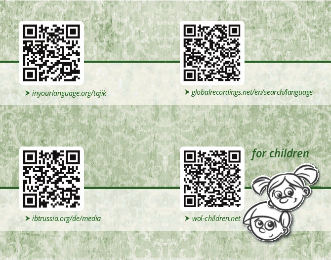 QR-Code Kärtchen "Prüft alles", Tadschikisch, 10er Pack