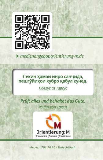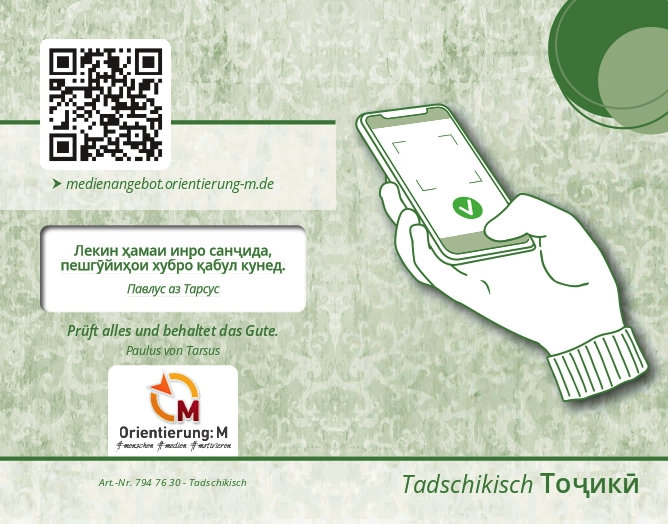 Die Jahreslosung für 2025 "Prüft alles und behaltet das Gute" steht auf der Vorderseite und lädt dazu ein, einen Blick in die Angebote, die sich hinter den Links verbergen, zu werfen. So haben Migranten, in deren Sprache wir z.Zt. weder Bibeln noch Neue Testamente bereitstellen können, die Möglichkeit, mit dem Wort Gottes in ihrer Muttersprache in Berührung zu kommen. Auch sehr gut zum Verteilen an LKW Fahrer geeignet! Das Set enthält je 2 Kärtchen in 5 Sprachen: Kasachisch, Kirgisisch, Tadschikisch, Turkmenisch und Usbekisch. Bitte beachten Sie: 1x im Warenkorb bedeutet 10 bestellte Kärtchen. Wenn Sie sie 10x in den Warenkorb legen, werden Ihnen 100 Kärtchen zugeschickt.