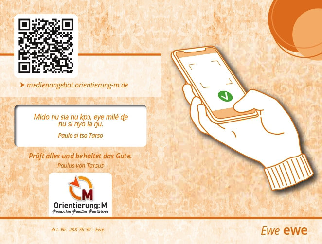 Die Jahreslosung für 2025 "Prüft alles und behaltet das Gute" steht auf der Vorderseite und lädt dazu ein, einen Blick in die Angebote, die sich hinter den Links verbergen, zu werfen. So haben Migranten, in deren Sprache wir z.Zt. weder Bibeln noch Neue Testamente bereitstellen können, die Möglichkeit, mit dem Wort Gottes in ihrer Muttersprache in Berührung zu kommen. Auch sehr gut zum Verteilen an LKW Fahrer geeignet!